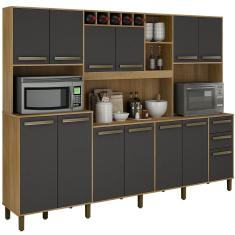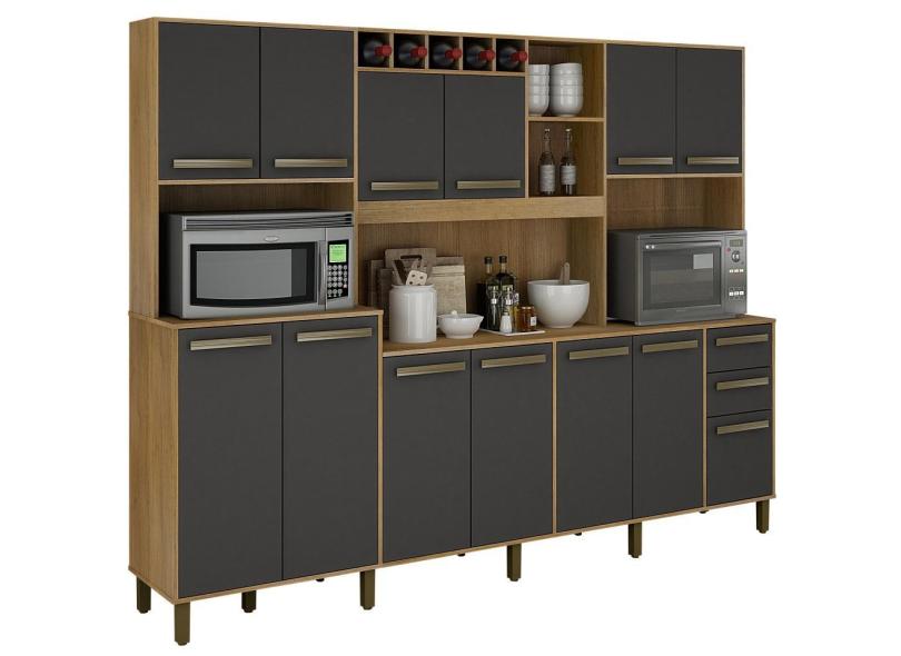 Cozinha Valdemóveis Ágata 13 portas e 2 gavetas – Cinamomo/Grafite
