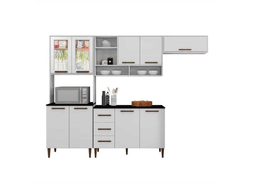 Cozinha Vitoria Com Vidro Reflecta 09 Portas 3 Gavetas Kaiki Moveis Branco