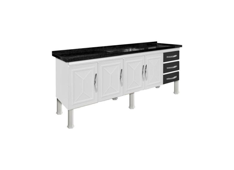 Gabinete Armario De Cozinha Aço P/pia 1.80 Desm. 3 Gavetas Ellos Branco c/ Preto - Marroart