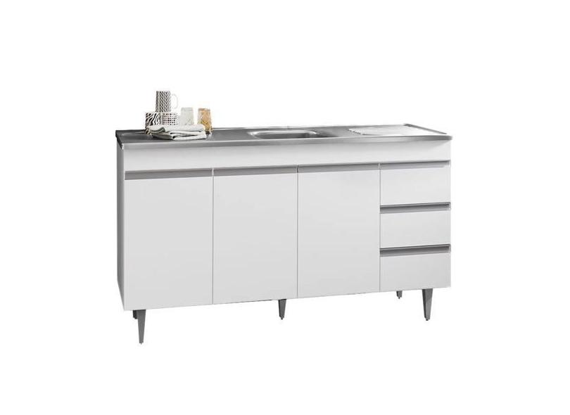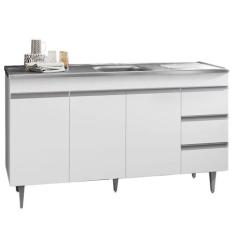 Gabinete Balcão Emma 1.50M 3 Portas 3 Gavetas S/ Tampo Cozinha Branco