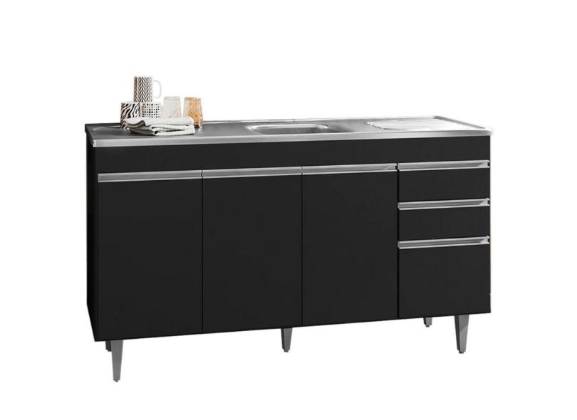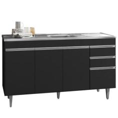 Gabinete Balcão Tesser 1.50m 3 Portas 3 Gavetas S/ Tampo Cozinha Preto - Bela Móveis
