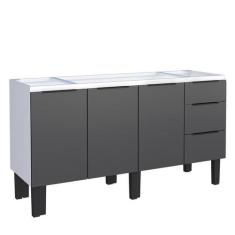 Gabinete de Aço Para Pia 160cm 3 Portas 3 Gavetas Jupter Cozimax Preto