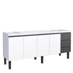Gabinete de Aço Para Pia 200cm 4 Portas 3 Gavetas Netuno Cozimax Branco/Preto