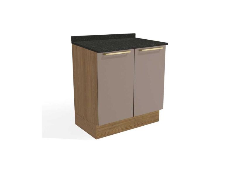 Gabinete de Cozinha Modulado Balcão Botanic M623 2 Portas c/Tampo 80cm Nogueira/Fendi/Preto Brilho - Kappesberg