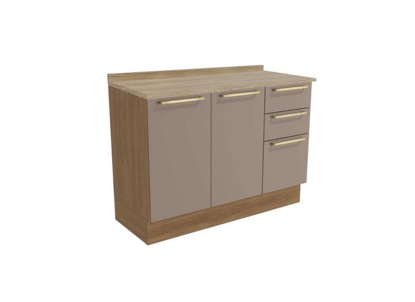 Gabinete de Cozinha Modulado Balcão Botanic M624 c/3 Gavetas e 2 Portas c/Tampo 120cm Nogueira/Fendi/Nogueira - Kappesberg