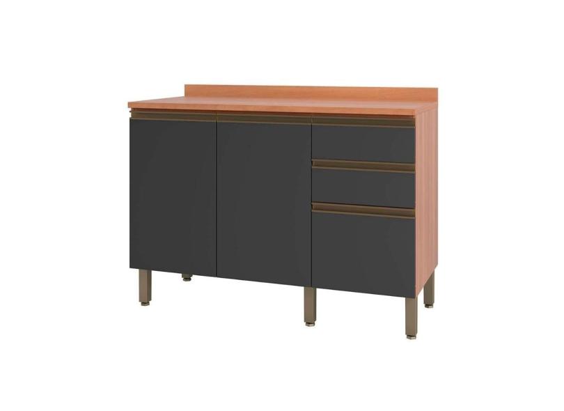Gabinete De Cozinha Modulado Balcão Macadâmia 120cm 2 Portas 3 Gavetas Freijo/grafite - Telasul