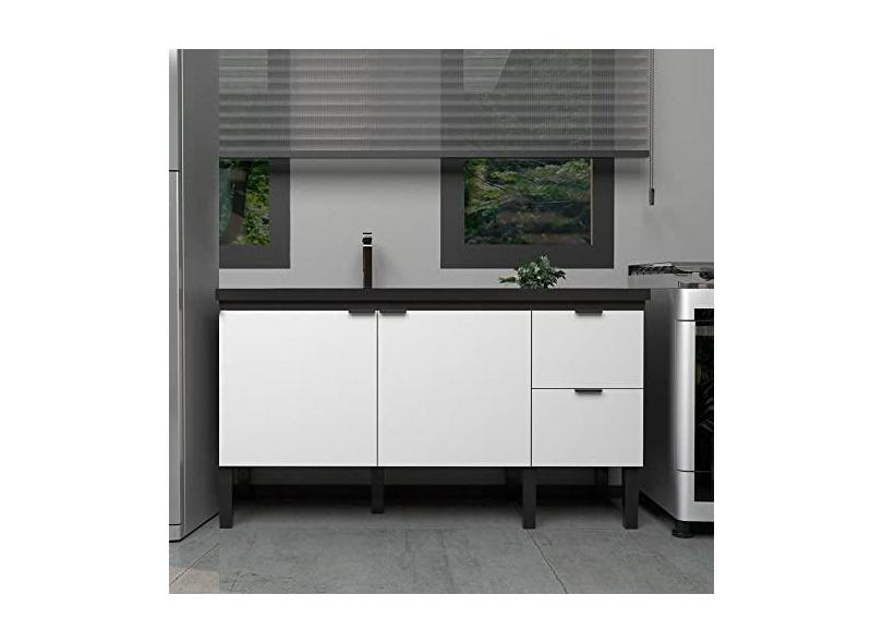 Gabinete de Cozinha para Pia 150cm 3 Portas 2 Gavetas Cozimax Branco/preto