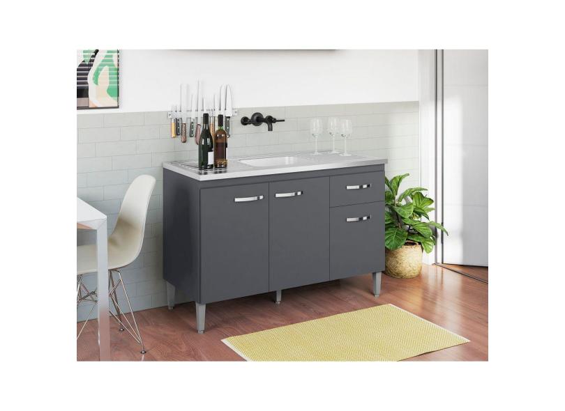 Gabinete de Pia Armário Gabriela 120cm Cinza S/Tampo - AJL Móveis