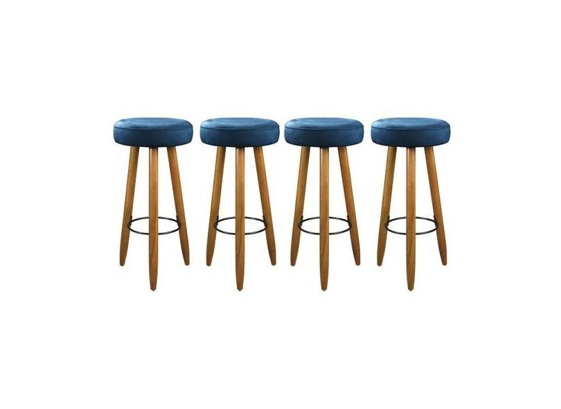 Kit 04 Bancos Alto Camila Espuma Decorativa Para Balcão Bistrô Azul Tu