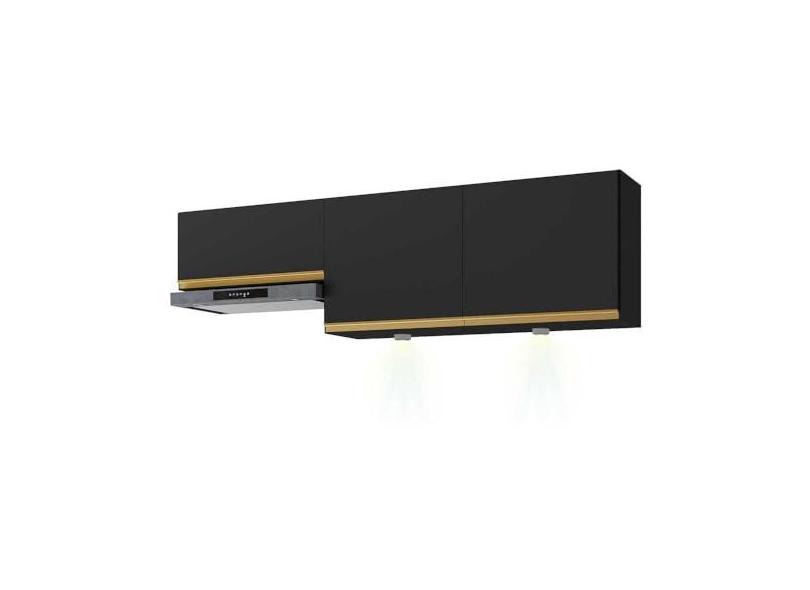 Kit 2 Armários de Cozinha Aéreos 3 Portas com Leds Veneza Multimóveis Mp2146 Preto/dourado