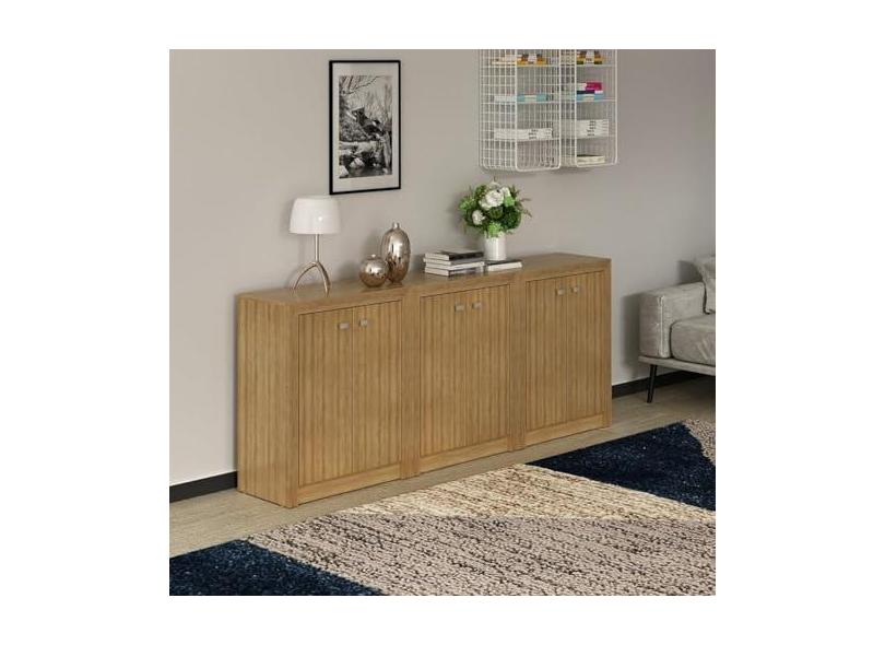 O menor preço encontrado no Brasil para Kit 3 Balcões Me4103 com 6 Portas e Prateleira Amendoa atualmente é R$ 621,12.