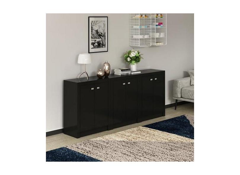 Kit 3 Balcões Me4103 com 6 Portas e Prateleira Preto