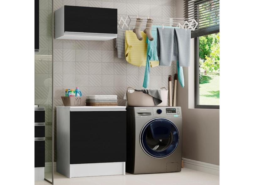 Kit Área de Serviço Madesa Topazio 60 cm com Armário e Balcão - Branco/Preto