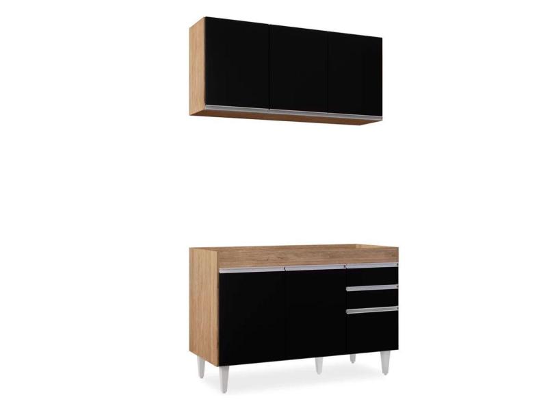 Kit Armário Aéreo Balcão Castanho Preto 120cm