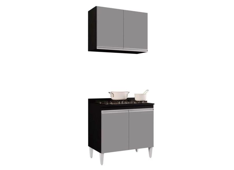 Kit Armário Aéreo Balcão Para Cooktop 02s 80cm Preto Cinza