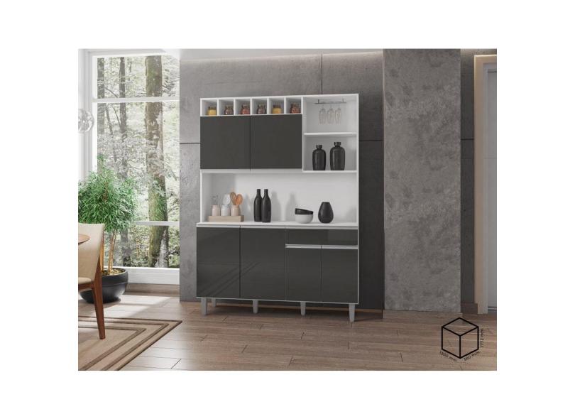 Kit Armario Cozinha Compacta Alice 130cm 6 Portas Cor Branco e Cinza AJL