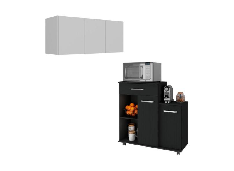 O menor preço encontrado no Brasil para Kit Armário de Cozinha 3 Portas com Balcão Multiuso Multimóveis MP2234 Branco/Preto atualmente é R$ 424,99.