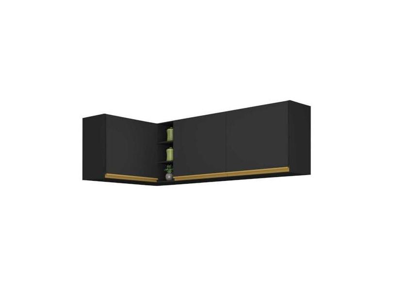 Kit Armário de Cozinha Aéreo Canto 90cm e Aéreo 120cm Veneza Multimóveis Mp2148 Preto/dourado