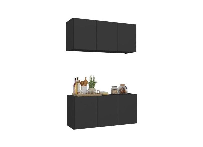 Kit Armário de Cozinha e Balcão 3 Portas Multimóveis Mp2164 Preto
