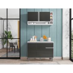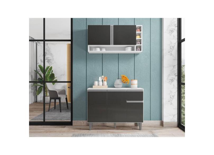 Kit Armario para Cozinha Compacto Vanessa Balcão 105cm Cor Branco e Cinza AJL