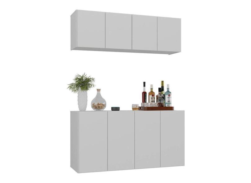 Kit Bar Armário Aéreo E Aparador 4 Portas Multimóveis Mp1075 Branco Branco