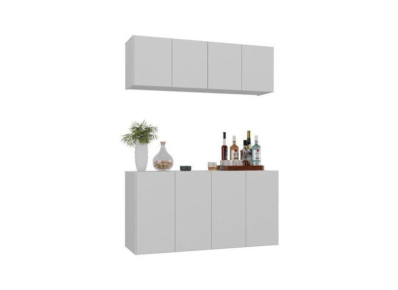 Kit Bar Armário Aéreo e Aparador 4 Portas Multimóveis Mp1075 Branco