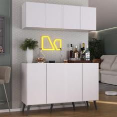 O menor preço encontrado no Brasil para Kit Bar Armário Aéreo e Aparador 4 Portas Retrô Multimóveis Mp1086 Branco/preto atualmente é R$ 543,99.