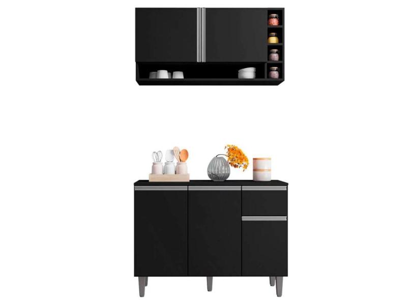 Kit Bel Cozinha Balcão 3 Portas S/ Tampo + Aéreo 2 Portas Preto - Bela Móveis