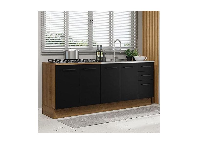 Kit com 2 Balcões de Cozinha Madesa Agata 3 Gavetas 4 Portas (sem Tampo e Pia) - Rustic/preto