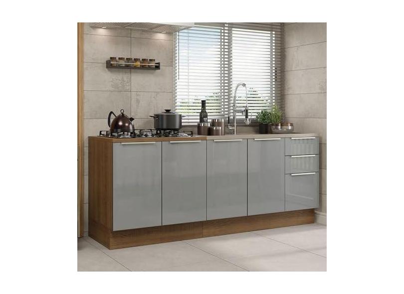 Kit com 2 Balcões de Cozinha Madesa Lux 4 Portas 3 Gavetas (sem Tampo e Pia) - Rustic/cinza