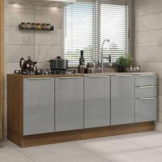 Kit com 2 Balcões de Cozinha Madesa Lux 4 Portas 3 Gavetas (sem Tampo e Pia) - Rustic/cinza