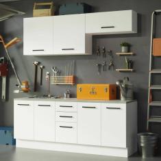 O menor preço encontrado no Brasil para Kit com 2 Balcões e 2 Armários Aéreos Multiuso 200cm Branco Agata Madesa atualmente é R$ 1.798,18.