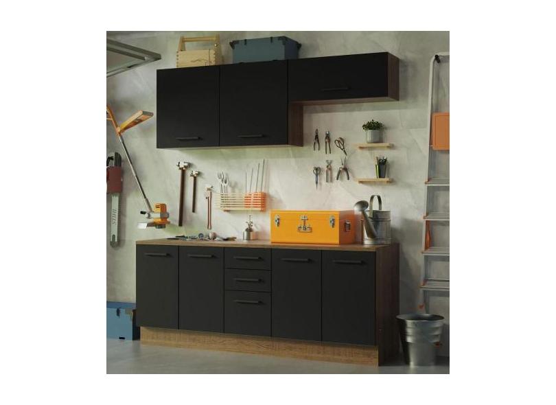 Kit com 2 Balcões e 2 Armários Aéreos Multiuso 200cm Rustic/Preto Agat