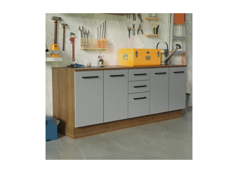 Kit Com 2 Balcões Multiuso 4 Portas 3 Gavetas Rustic/Cinza Agata Mades
