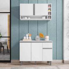 Kit Com Balcão De Cozinha E Armário Aéreo Vanessa Branco Móveis Leartam