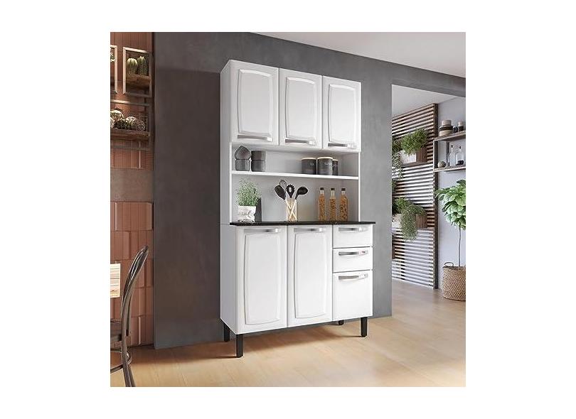 O menor preço encontrado no Brasil para Kit Cozinha 105cm 6 Portas 2 Gavetas Pratika Branco atualmente é R$ 799,98.
