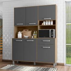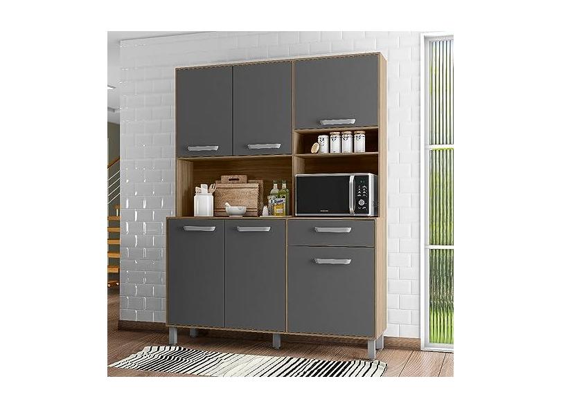 Kit Cozinha 6 Portas 1 Gaveta Fortaleza Carvalho Grafite
