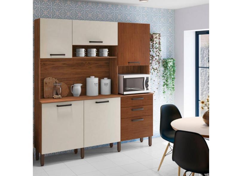 Kit Cozinha 6 Portas E 2 Gavetas Nogueira Off White