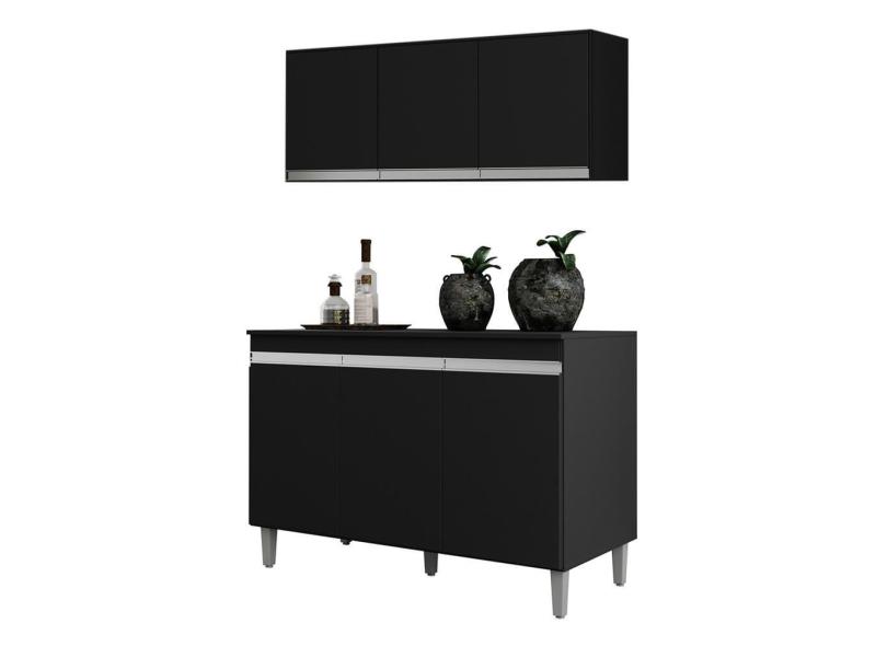 O menor preço encontrado no Brasil para Kit Cozinha Balcão Manu 120cm Com Tampo Mdp E Aéreo Andréia Preto - Ajl Móveis atualmente é R$ 777,00.