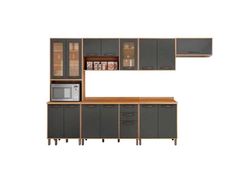 Kit Cozinha Completa 6 Peças áustria (1 Paneleiro 3 Armários 2 Balcões) C6p29 Cinamomo/grafite