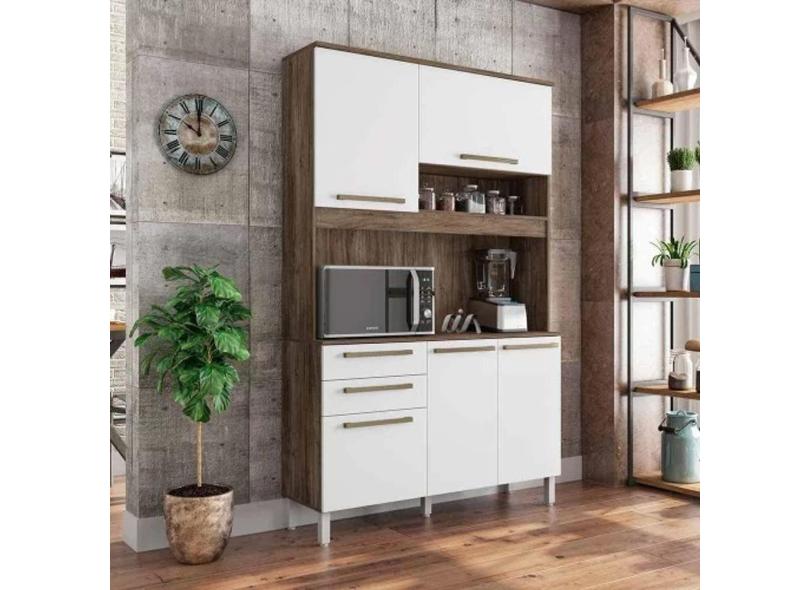 Kit Cozinha Madeira Prisma 05 Portas 02 Gavetas Carvalho Branco Madine Moveis