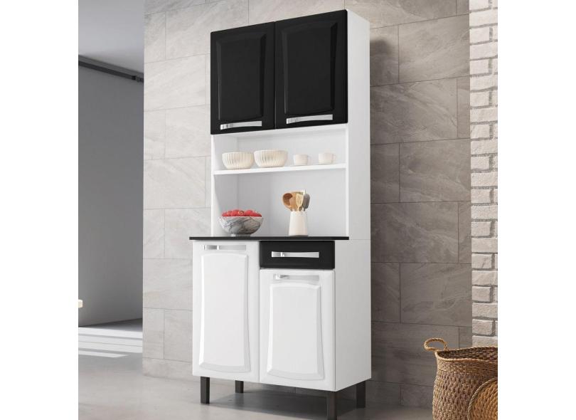 Kit Cozinha Pratika 80cm 4 Portas 1 Gaveta Itatiaia Branco/Preto