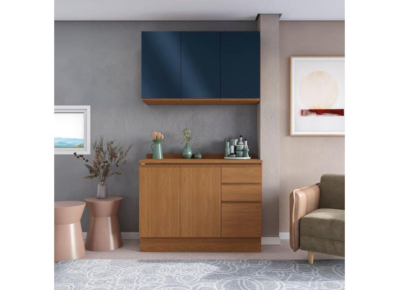 O menor preço encontrado no Brasil para Kit de Cozinha 2 Balcões com Tampo de Madeira Canela/Azul atualmente é R$ 1.049,98.