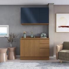 Kit de Cozinha 2 Balcões com Tampo de Madeira Canela/Azul