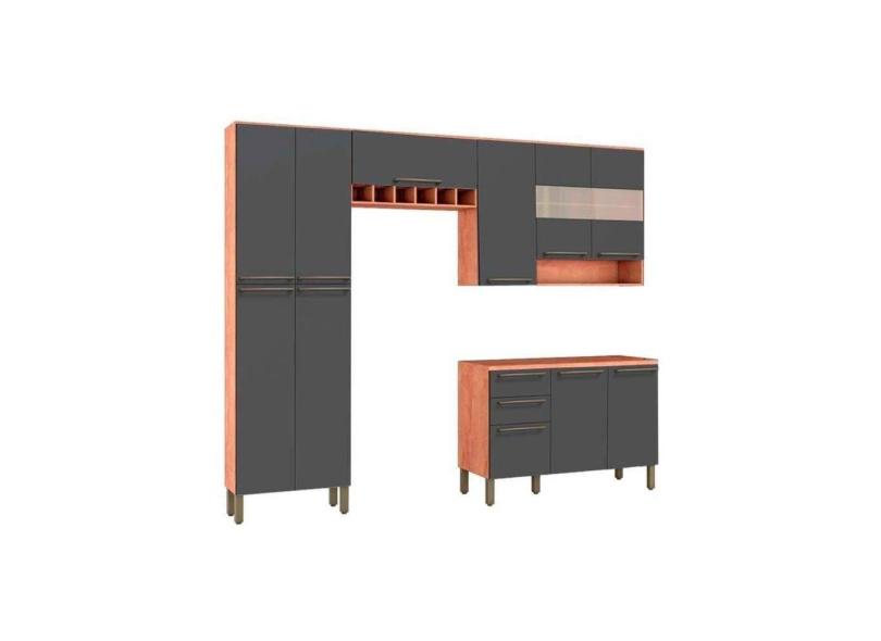 Kit De Cozinha 4Pçs Napoli Prime (2 Armários + 1 Balcão + 1 Paneleiro) C4p01 Castanho/chumbo