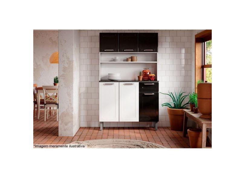 Kit De Cozinha Compacta Dona Maria c- 6 Portas E 1 Gaveta 105cm Branco-preto - Bertolini
