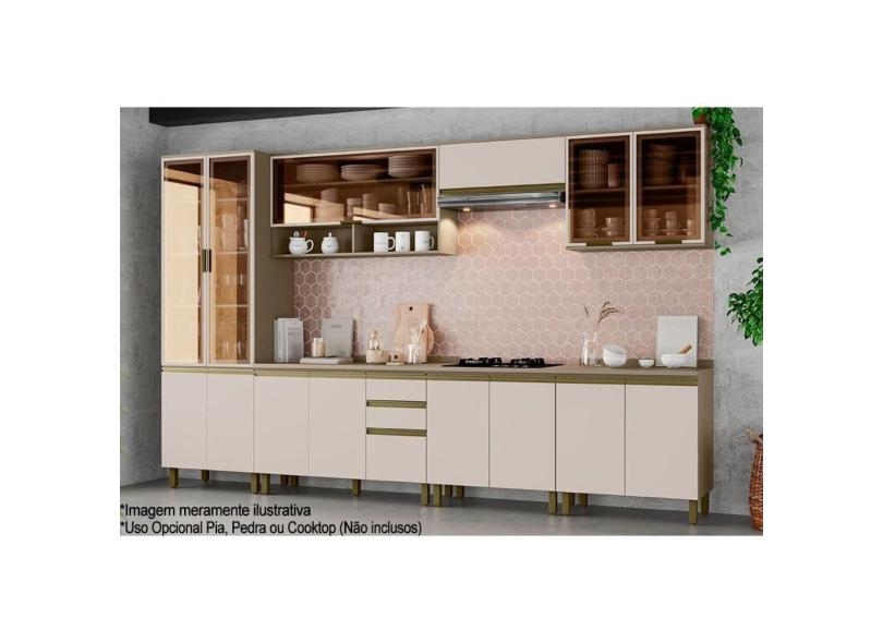 Kit de Cozinha Completa 10 Peças Connect (3Aéreos+3Balcões+1Paneleiro+3Complementos) C6P10 Duna/Cristal - Henn