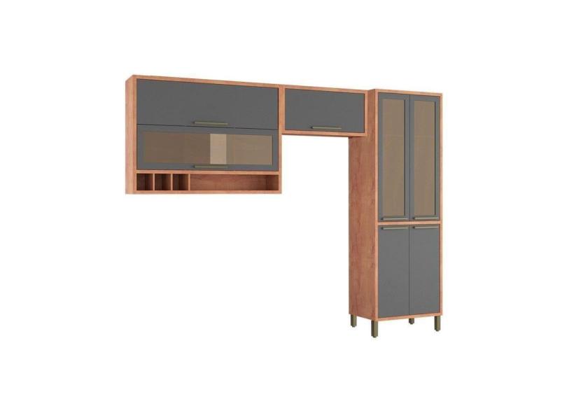 Kit De Cozinha Completa 3 Peças Syrah (2 Armários + 1 Paneleiro) Cpt01 Castanho/chumbo - Ronipa