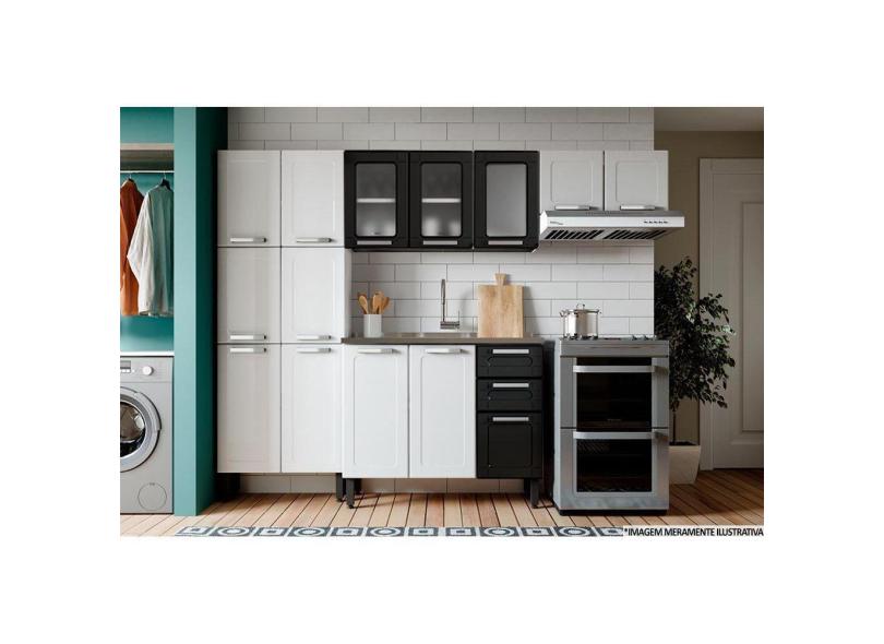 Kit De Cozinha Completa 4 Peças Múltipla (2 Armários + 1 Balcão + 1 Paneleiro) C4p76 Branco/preto