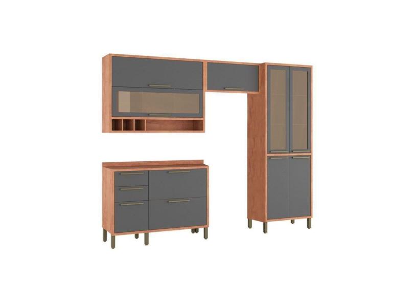 Kit De Cozinha Completa 4Pçs Syrah (2 Armários + 1 Balcão + 1 Paneleiro) C4p05 Castanho/chumbo